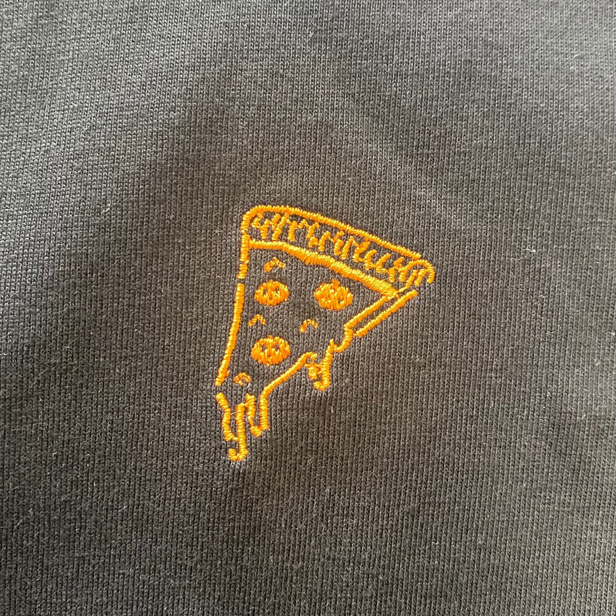 Tシャツ ピザ刺繍ワンポイント ブラック